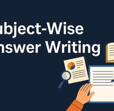 Subject-wise answer writing is a high-impact strategy for UPSC Mains that goes beyond generic responses. It trains aspirants to adapt structure, language, and examples to each subject’s unique demands, integrate relevant dimensions, enhance presentation, and manage time effectively—transforming knowledge into precise, impactful answers that align with examiner expectations and boost scores.